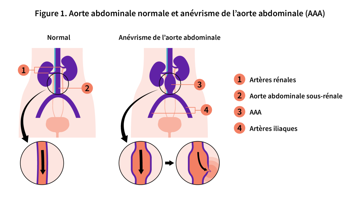 Un AAA est une dilatation de l’aorte abdominale qui, en cas de rupture, entraîne une mortalité supérieure à 80 %.